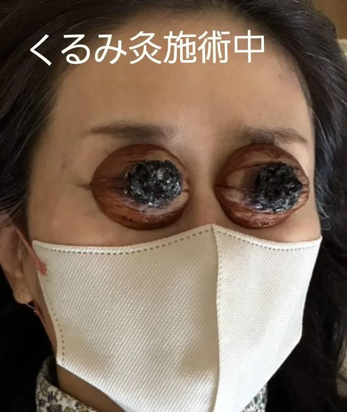くるみ灸(胡桃灸)は、くるみの温熱と成分を活かすことで、目の周りの血行を促進し、目の疲れや症状を和らげる柔らかい刺激のお灸です。